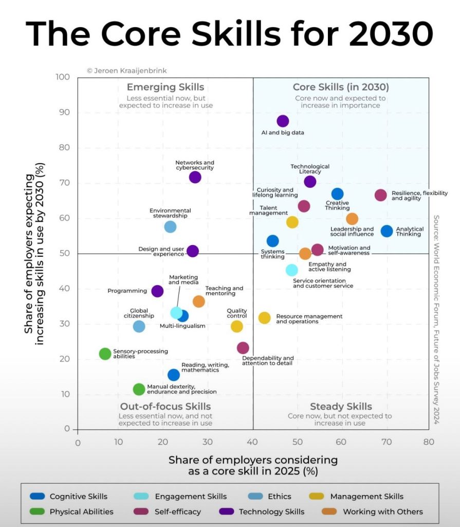 The World Economic Forum (WEF) offers some good clues in their Future of Jobs Report. If you are wondering where to invest your energy—and your team’s energy—these skills are a great compass.